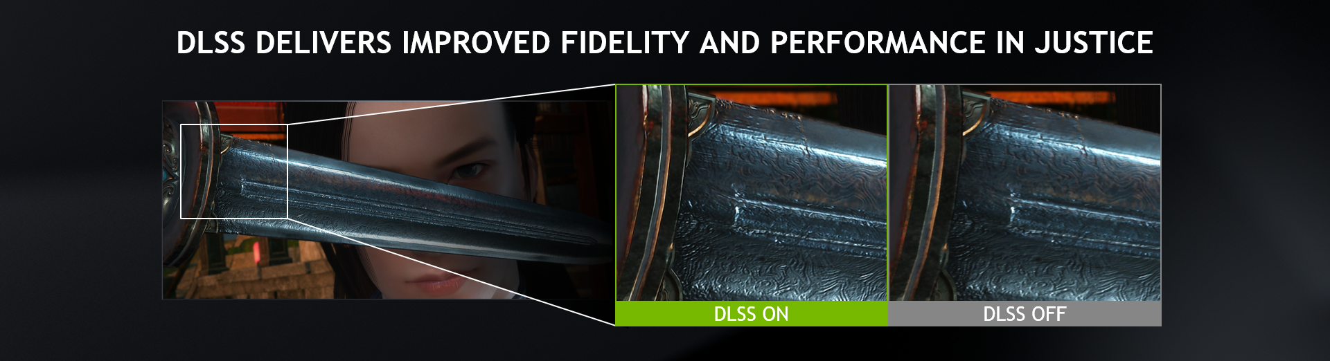 在《逆水寒 (Justice)》中,DLSS 将性能提升了可达40%,与上一代 GeForce GPU 相比,GeForce RTX GPU 的性能提升可达 90%。而在图像质量方面,DLSS技术 可以提供更清晰的细节。